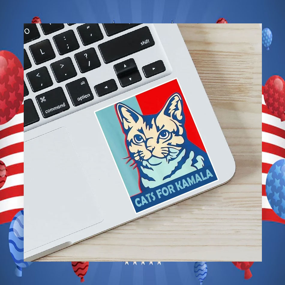 Join the “Cats for Kamala” movement and order your sticker today! Let your feline friends show their support for a leader who shares their love for animals.